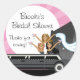 The sticker is made on wonderful paper and had no problem sticking to the bag that I purchased to put it on. I wanted to find a design that would be cute for the bride and groom and this one fit the bill as it has cute "bees" buzzing around and the wedding was taking place in a town called "Bee Cave". The packaging was great and protected the stickers. The website is easy to navigate and there are so many color choices. I had no problem finding a color that the bride was using on everything else selected. The design was adorable and there were many to choose from. You can make the figure as larger or smaller and you can place the photo and writting whereever you want to in the sticker. The printing is fabulous..better than expected.