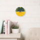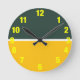This stylish green and gold clock will definitely stand out. It's great for people who cheer on the green and gold. The large bold numbers make telling time very easy.