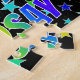 This exciting and fun birthday-themed jigsaw puzzle design features the message "HAPPY BIRTHDAY, LINDSAY" with the characters having a colourful rainbow spectrum inspired gradient pattern, in addition to a lively stars background pattern. A vibrant puzzle like this might be a fun way to acknowledge the birthday of somebody named Lindsay. [~Z0000468]