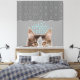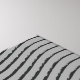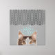 Modern staring cat peeking up to see you with wave black lines, aqua abstract dots against a medium grey background.