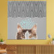 Arrived in about 5 days! Looks just like the example. Client wanted cat themed wall art for landing of a business. Slight sheen on canvas but just right. This larger frame did not include hooks, but we hung it just fine. Playful and modern look. Great, rich color and looks just like the photo shown!