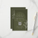 Wedding RSVP with green colour scheme, arch, and white text and botanical line art details. Replace the QR code with your own.