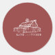 Line Art Barn Muted Red Farm Fall Wedding Classic Round Sticker