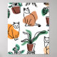 Line art drawing cats and flowers poster