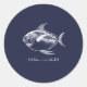 Line Art Fish Dark Blue Beach Wedding Classic Round Sticker
