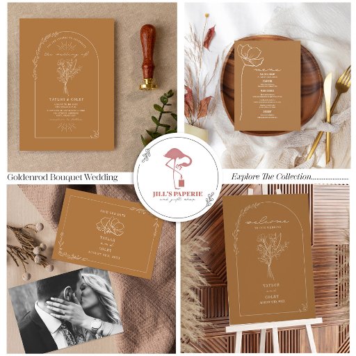 Line Art Flowers Goldenrod Wedding Classic Round Sticker