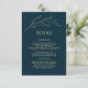 Line Art Leaves Deep Blue Elegant Wedding Details Enclosure Card