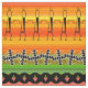 Stick figures "Line Dance" in rows with other shapes on a colourful gradient background.