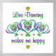 Share your love for line dancing and how it makes you feel with this colourful design with hearts, flourishes, and the words - Line Dancing makes me happy.