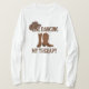 I love this shirt. I had written to the artist asking her if this picture was available on a shirt, and she wrote me back telling me where I could find the shirt. These shirts can be custom made to have a different saying. I loved this saying and went with it. The artist wrote me back later to tell me that she had seen my order go through. How's that for service? Pretty special. It's just as displayed. Perfect!