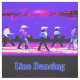 This fabric has a group of line dancers with music notes above them. The main colours are blue, pink and black. This version has LINE DANCING text and there is another one without the words. This is also available in a red, black and yellow colour scheme.