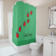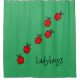 Line of Ladybugs Design Shower Curtain with customizable background color and text. For no text, delete sample text and leave blank.