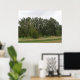 This beautiful print features a photograph of a line of trees and the edge of some grassland. The photo was taken in Britain on a nature reserve. The trees look like they are leaning to one side.
