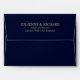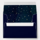 A winter wedding lined envelope, inspired by a snowy night, features a dark blue watercolor background with the wording in gold.
