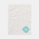 Linen Beige and Mint Zigzag Pattern Monogram Fleece Blanket