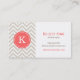 Linen Beige & Coral Chevron Custom Monogram Business Card