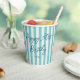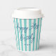 Personalise your event with custom name paper cups — perfect for enjoying coffee or a cool soda! This chic design features trendy script typography, and a simple striped pattern with a faux linen look. Customise the template with a name and age — perfect for milestone birthdays including 18th, 21st, 30th, 40th, 50th, 60th, 70th, 80th, 90th, and 100th! This elegant design blends timeless style with a modern twist, and the text can easily be adjusted for anniversaries, holidays, office parties, or a special occasion. Printed colours: natural mint green, blue-green, dark blue, navy, and white.
