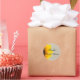 The sticker is made on wonderful paper and had no problem sticking to the bag that I purchased to put it on. I wanted to find a design that would be cute for the bride and groom and this one fit the bill as it has cute "bees" buzzing around and the wedding was taking place in a town called "Bee Cave". The packaging was great and protected the stickers. The website is easy to navigate and there are so many color choices. I had no problem finding a color that the bride was using on everything else selected. The design was adorable and there were many to choose from. You can make the figure as larger or smaller and you can place the photo and writting whereever you want to in the sticker. The printing is fabulous..better than expected.