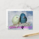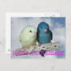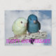 A creamino and a cobalt blue lineolated parakeet (linnies) are featured on this postcard