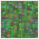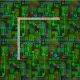 Colourful nodes connected by straight lines to make an interesting, interconnected network. Now with a dark green background and little gold pins around the nodes.