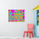 "Lines of Communication" a colourful abstract design in magenta, blue and shades of amber and orange.
