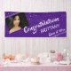 Welcome your graduation party guests and honour the graduate with this editable purple and white banner sign featuring the graduate's photo. The design has simple, clean white lines and muted stars with a brush script title "Congratulations NAME" and graduation year. PHOTO TIP: For fastest/best result, choose a photo with the subject in the middle of a horizontal rectangle and/or pre-crop it to a similar shape as shown BEFORE uploading and it will fill in the photo space perfectly. You can change the purple background colour and text colour to any colour to coordinate with your school colours or party theme colours by clicking on the "click to customise further" tab. Contact the designer if you’d like this design modified, on another product or would like coordinating items for your party ensemble.