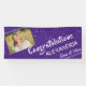 Welcome your graduation party guests and honour the graduate with this editable purple and white banner sign featuring the graduate's photo. The design has simple, clean white lines and muted stars with a brush script title "Congratulations NAME" and graduation year.