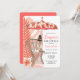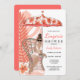 Lingerie bridal shower invitation features coral and pink tropical flowers, umbrella and brunette bride to be. Available with blonde, brown, and red hair and light and dark skin.