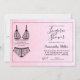 Bridal Lingerie Shower invitations for the Bride to Be. Lingerie Shower Invitation has black lace lingerie on a textured pink background. Add your party details by clicking on personalise and using the easy template.