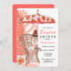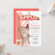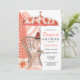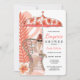 Lingerie bridal shower invitation features tropical flowers, umbrella and redhead bride to be. Available with blonde, brown, and red hair and light and dark skin.