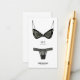 Lingerie insert card featuring feminine black lace bra and panties. Customise with the bride's undergarment measurements. Great to enclose with bachelorette party invitations to ask the girls to bring the bride something special for the honeymoon.
