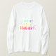 The "Linked by Heart" t-shirt design features the phrase in bold, multicolored letters, creating a vibrant and eye-catching display. The colours used in the text evoke a sense of connection and warmth, reflecting the sentiment behind the phrase. The design is simple yet impactful, making it suitable for a variety of occasions and styles.