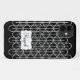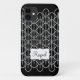 Grphic linked ovals 190 inspired black & white mono patterned iphone case. Personalise with your name or initial. Currently reads Raquel. Design by Sarah Trett.