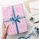 Everyday wrap ideal for her birthday and girlie occasions, or other occasions. Modern patterned wrapping paper in a white and pink. Uniquely designed by Sarah Trett.