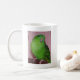 Enjoy your coffee with the beautiful image of this green lineolated parakeet!