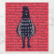 This was designed with a linocut chicken, black dots and glitter.
