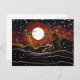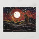 Linocut of Mermaid Gazing at the Moon in the Wave Postcard