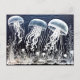 Linocut of White Jellyfish Swimming at Coral riff Postcard