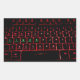 Red lit computer keyboard with green lit Linux letters.