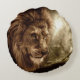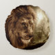 Lion against stormy sky round cushion