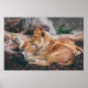 LION AND LIONESS LYING ON BROWN SURFACE POSTER