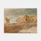 This design features a painting by Briton Riviere (1840–1920), who was an English artist of Huguenot descent. It shows a male lion with three lionesses as they prowl alongside the shore of a river in Africa. The ground that the lions are walking on is dry and arid, and the water of the river looks refreshing. There is land on the other side of the river with some greenery and palm trees. The male lion can be identified by his large mane of fur. No female lioness has a mane. All four of the animals are strong and muscular. They are walking proudly and confidently through the landscape.