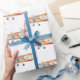 Whimsical watercolor pattern features a lion flying in a biplane.