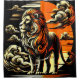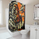 This shower curtain has an orange lion design on it.