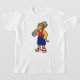 The t-shirt feels and looks great quality, a good thick cotton. It will be a little big for my son, but that means he will be able to wear it and not out grow it too soon. The print was as described on the order when personalised. True size, shape and colour T-shirt- thanks.