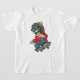 The t-shirt feels and looks great quality, a good thick cotton. It will be a little big for my son, but that means he will be able to wear it and not out grow it too soon. The print was as described on the order when personalised. True size, shape and colour T-shirt- thanks.
