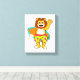 Lion as Surfer with Surfboard Canvas Print