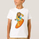 The t-shirt feels and looks great quality, a good thick cotton. It will be a little big for my son, but that means he will be able to wear it and not out grow it too soon. The print was as described on the order when personalised. True size, shape and colour T-shirt- thanks.