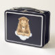 This is a standard metal lunchbox that appears to work just fine. We designed this box ourselves with an uploaded photo and custom text on the front and back. It looks absolutely beautiful except the front of the lunchbox is not centered like it shows in the photo. The print borders don't align with the inset flat part of the box where the preview photo online showed it perfectly centered in there. The back looks nice and centered though.