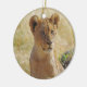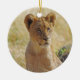 Porcelain Christmas Tree ornament showing a close-up photo of a lion cub sitting in the tall yellow grass. This photo was taken in the Savuti Camp area of Okavango Delta, Botswana, July 2012.